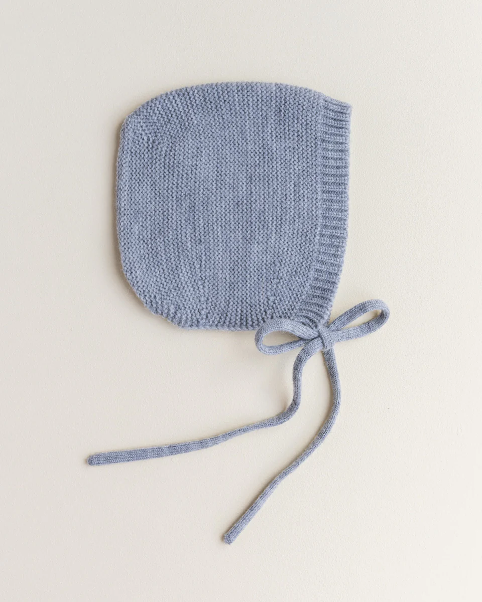 • A soft seamless knitted bonnet made in 100% merinowool. The bonnet is mediumthick and perfect to wear outside and inside as well. It keeps the babies on a good temperature. The ribbon makes it a good fit on the head.
