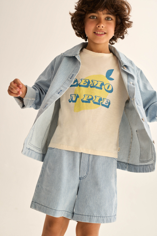 Shirt in lightweight chambray denim. Classic collar and button-front closure. Dropped shoulders and short sleeves. Front pockets and a yoke at the back.