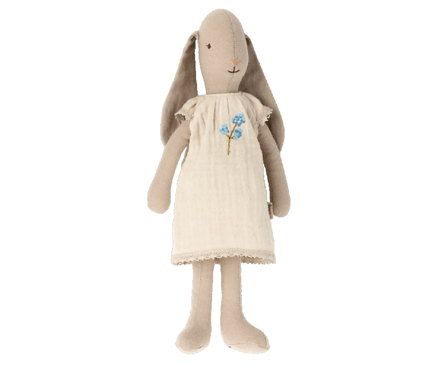 A bunny made of soft natural linen fabric that gives a lovely hand feel and look. Size 2 bunnies fit into the Maileg doll house and all furniture size Mini. If a new wardrobe is needed one day, it is possible to buy loose clothes for this friend.