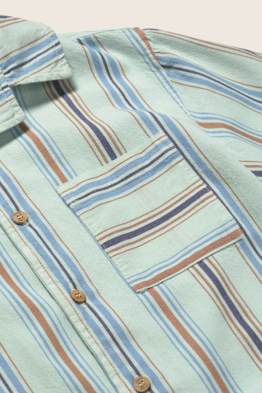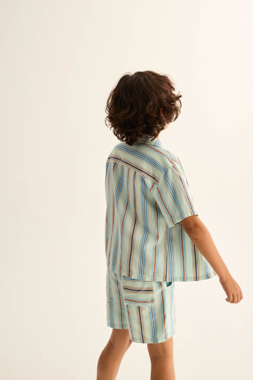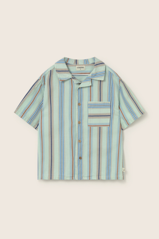 • Striped shirt made of soft cotton. Short sleeves. Button-down placket at the front. Patch pocket on the chest with horizontal stripes.