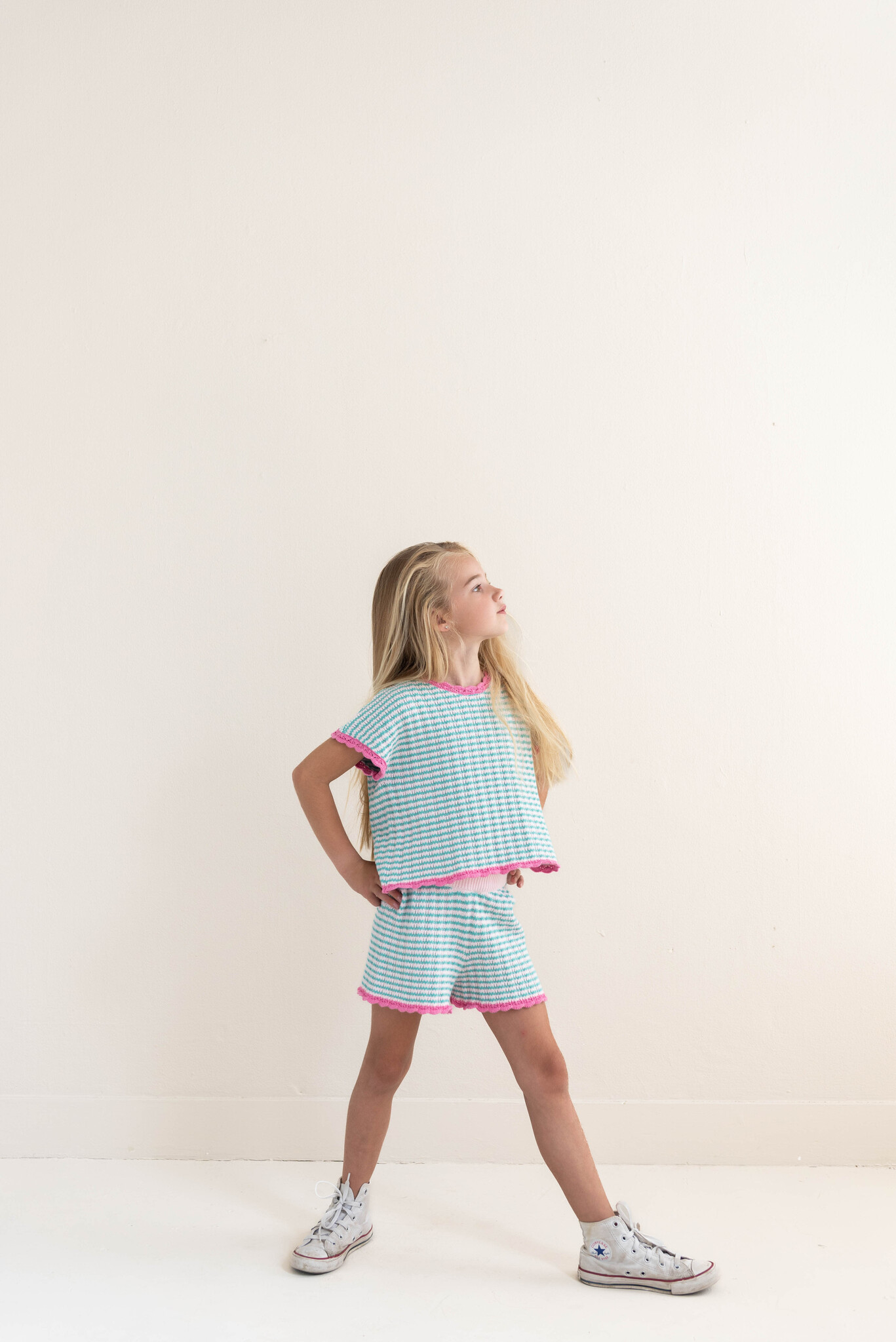• This soft knitted top is made in a charming stripe pattern features fancy finished neckline, hem, armholes.