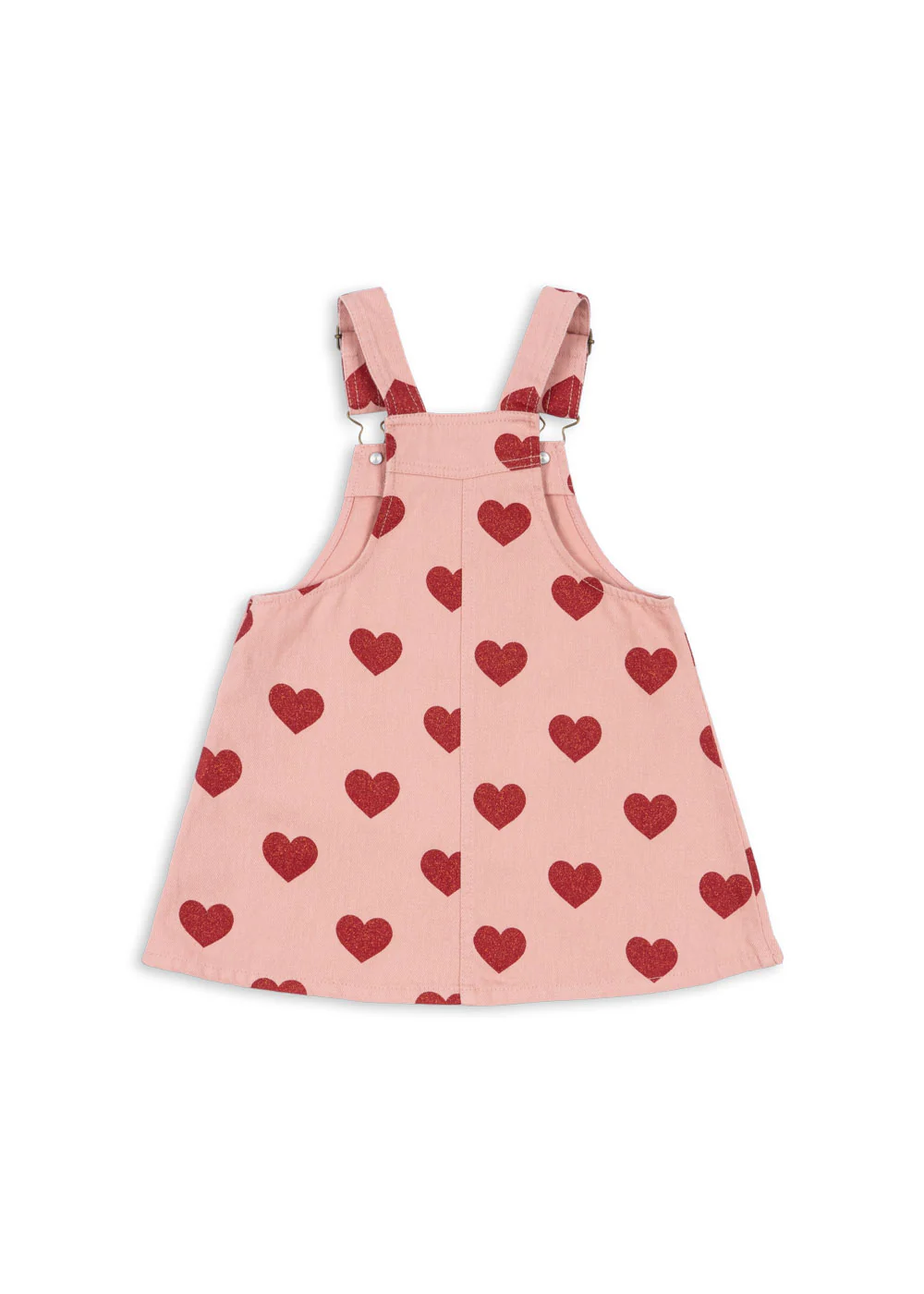 • Spencer dress in a soft denim fabric with classic buckle and strap closure. Designed with an all-over glitter heart print.