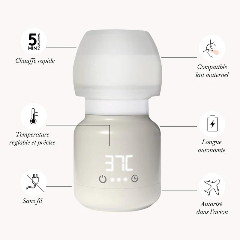 • Compact, lightweight and easy to transport, the TooGo quickly heats breast milk, infant formula or water, while preserving their nutritional qualities.