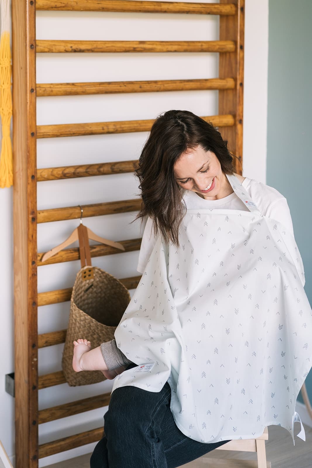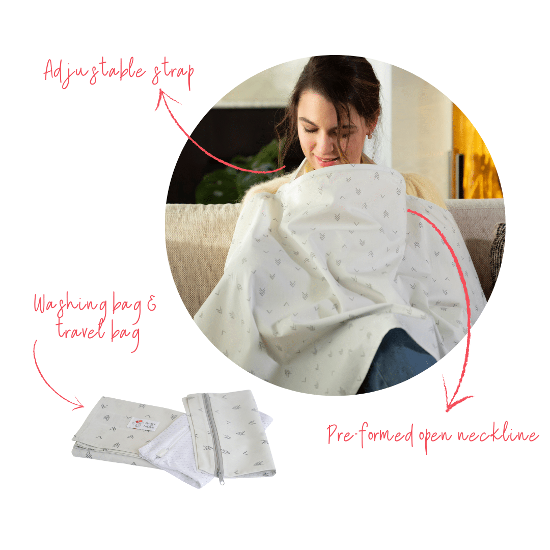 • The Baby on the Move premium Nursing Cocoon is made of 100% handpicked Peruvian Pima cotton. The original design with contoured neckline encourages you and your baby to continue breastfeeding comfortably while on the move.