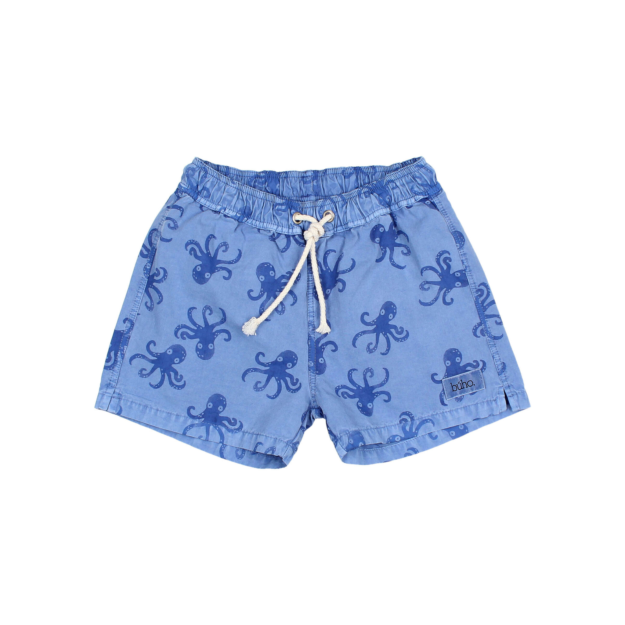 • Organic cotton swimsuit with octopus print. Elastic waistband for a better fit. Adjustable raw cotton drawstring at the waistband.