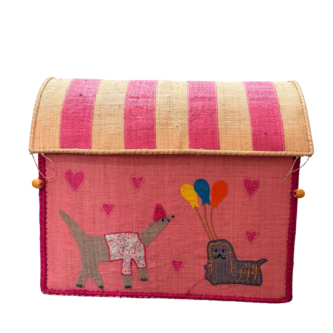 This product is handmade from the wonderful natural material raffia. The raffia fibres come from the leaves of palm trees, and all raffia products originate from Madagascar. The raffia baskets and houses are among the very first products. The products are made in two villages in the mountains of Madagascar, thereby supporting more than 300 families on the Red Island.