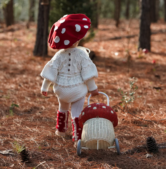 Meet the whimsical mushroom luggy in two toned natural. It exists in the world between practical and fairytale and is perfect for lugging about at home or on the go.