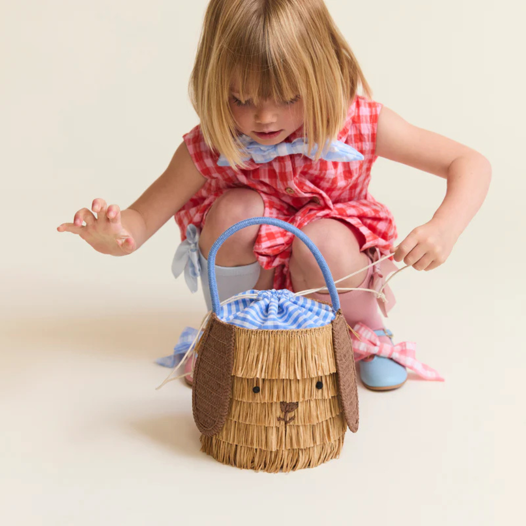 Floral designs are always popular, but they are having a real moment right now. Welcome to this woven paper basket bag, which looks like a pink flowerpot, complete with raffia flowers, a lift-up lid, and a cord handle.