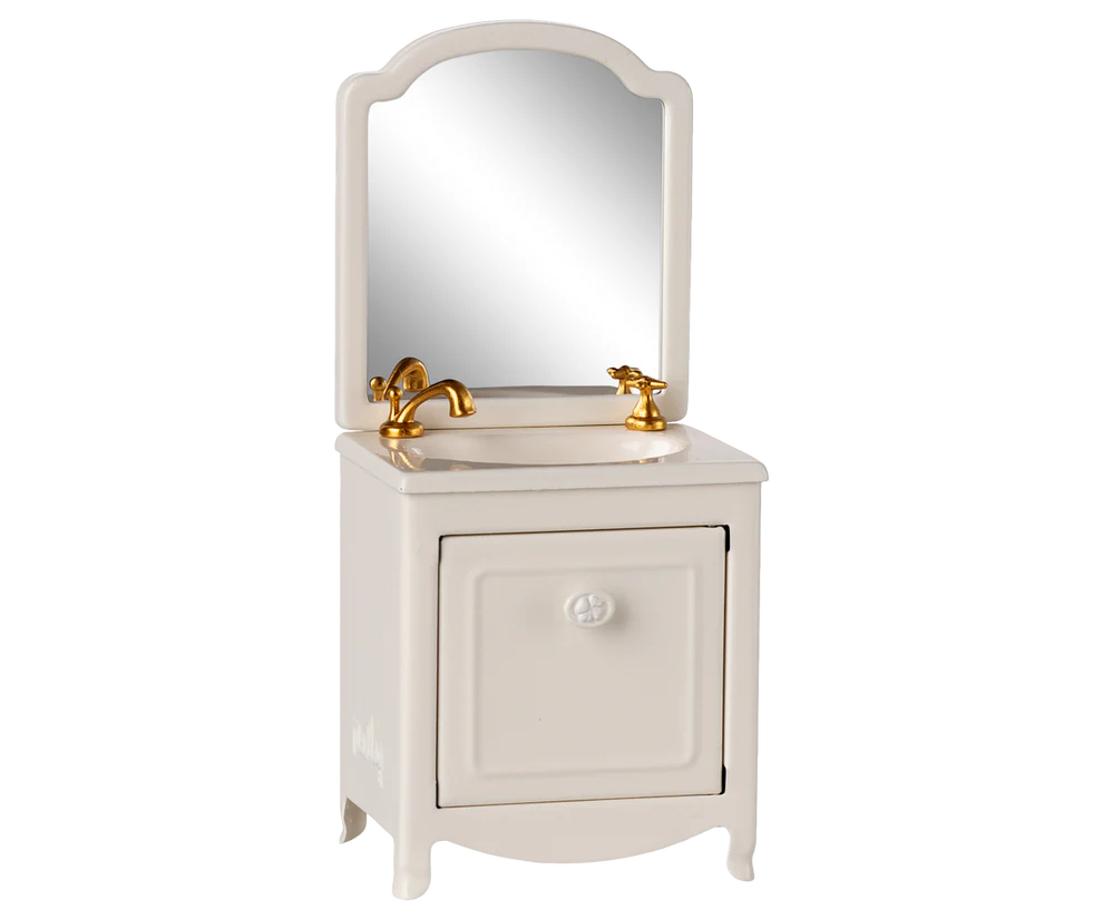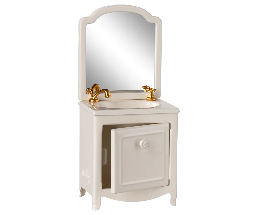 A very essential item for the the bathroom in any mouse house. It has a small closet under the sink and of course a mirror as well. Add the Maileg toilet and bathtub to extent the play.