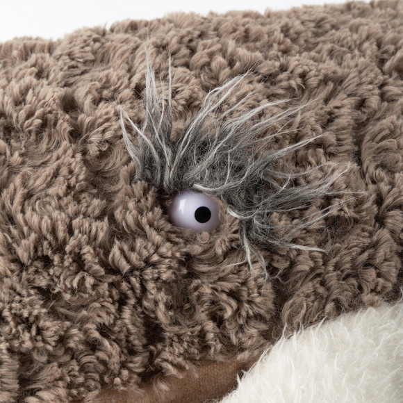 This fluffy baby owl enchants everyone with those huge, pleading eyes, adorably clumsy feet and little wings hidden in the lush feather plush. Soo cute ... and by the way a wide-awake companion for many a long movie night!