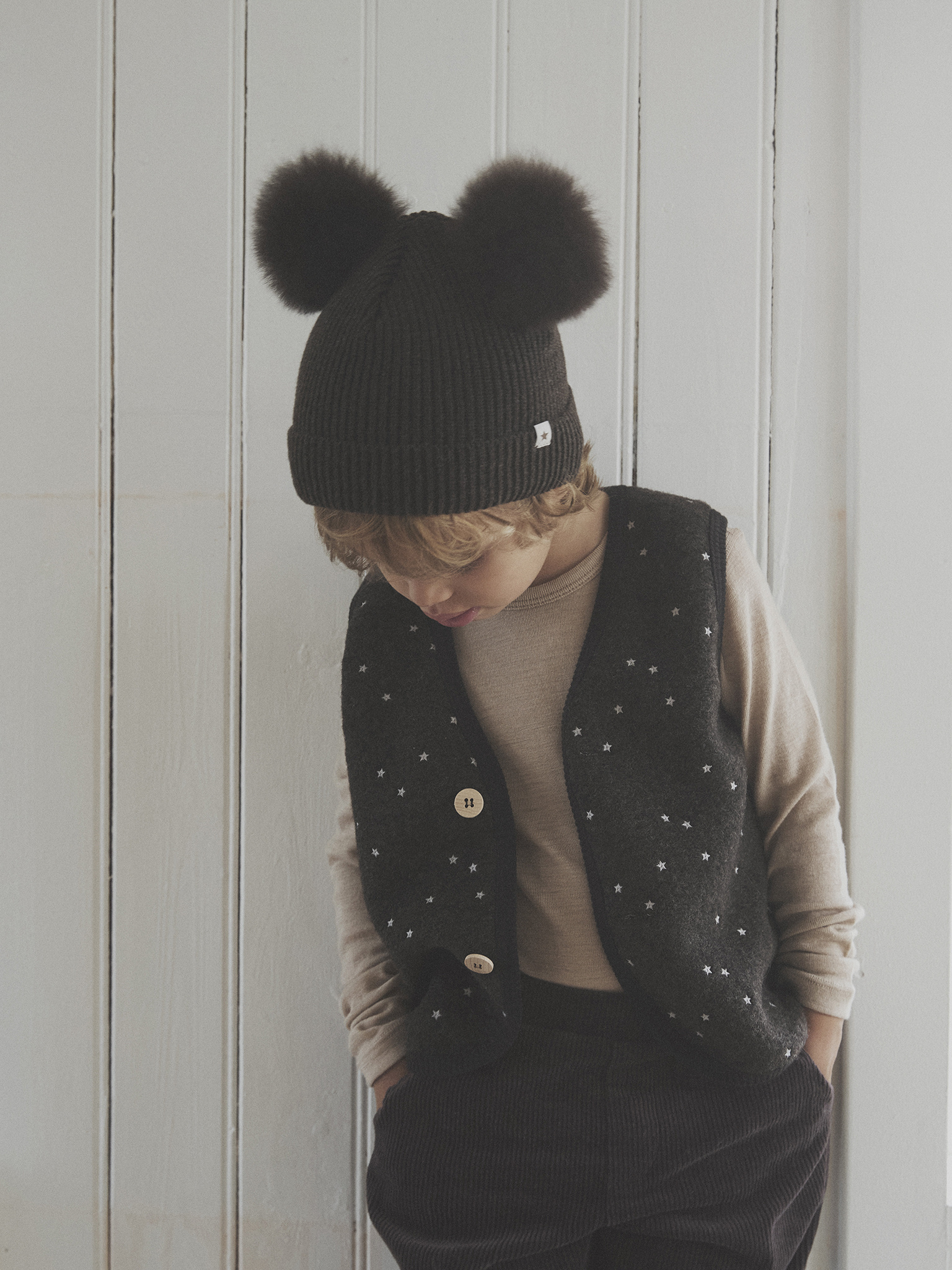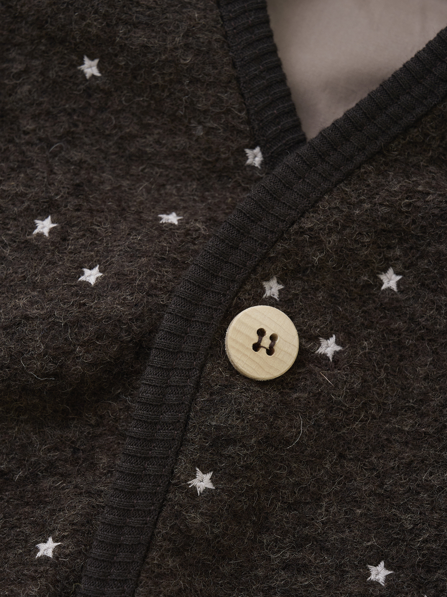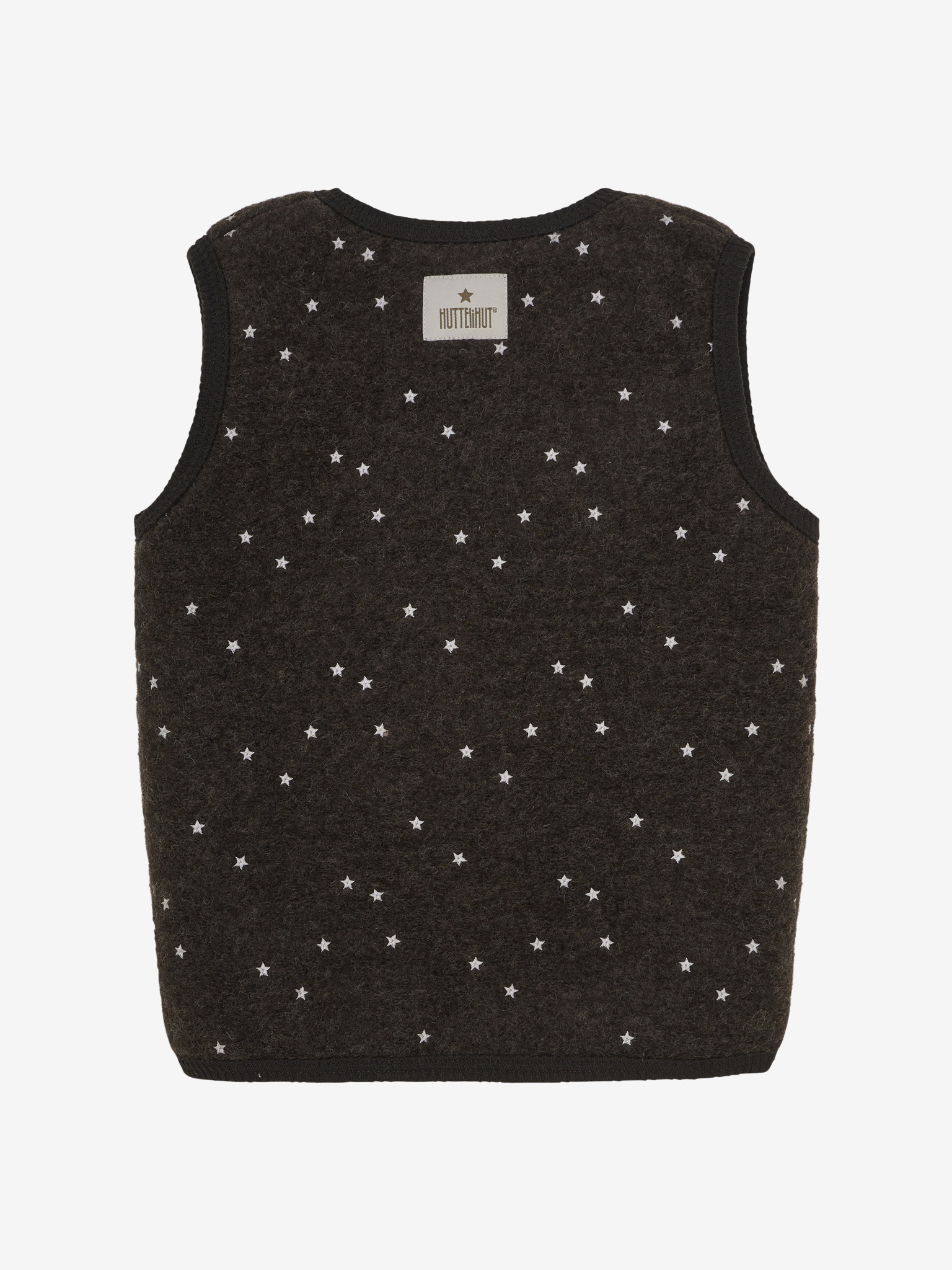 Vest Wool Emb. w. Lining - Dark Brown Melange