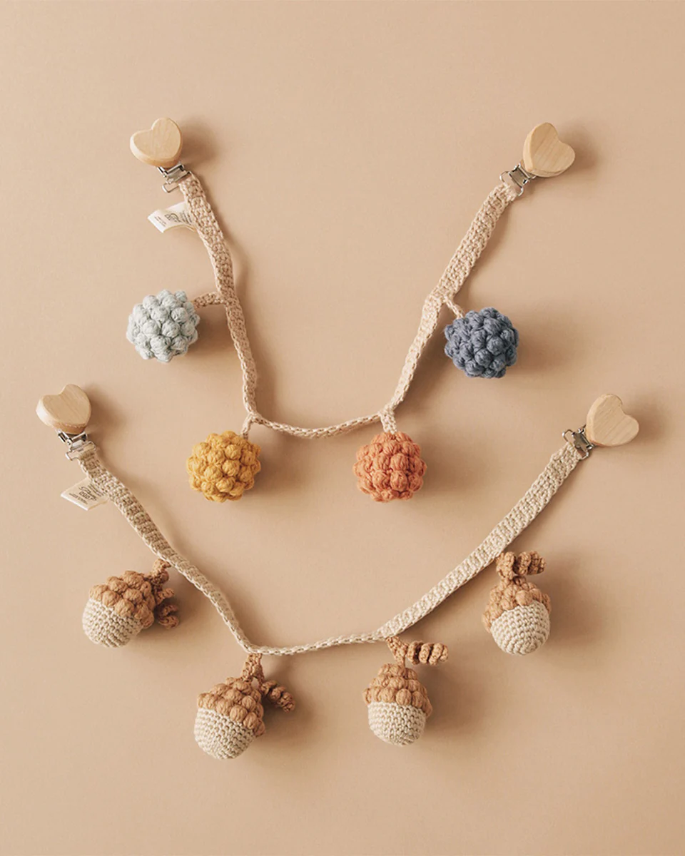Zacht en zoet als het fruit. Deze Aardbeienwagenketting is het perfecte cadeau voor een sprookjesbos-sfeer, zacht en makkelijk vast te pakken. Ideaal speelgoed om je baby te stimuleren met verschillende vormen en geluiden.