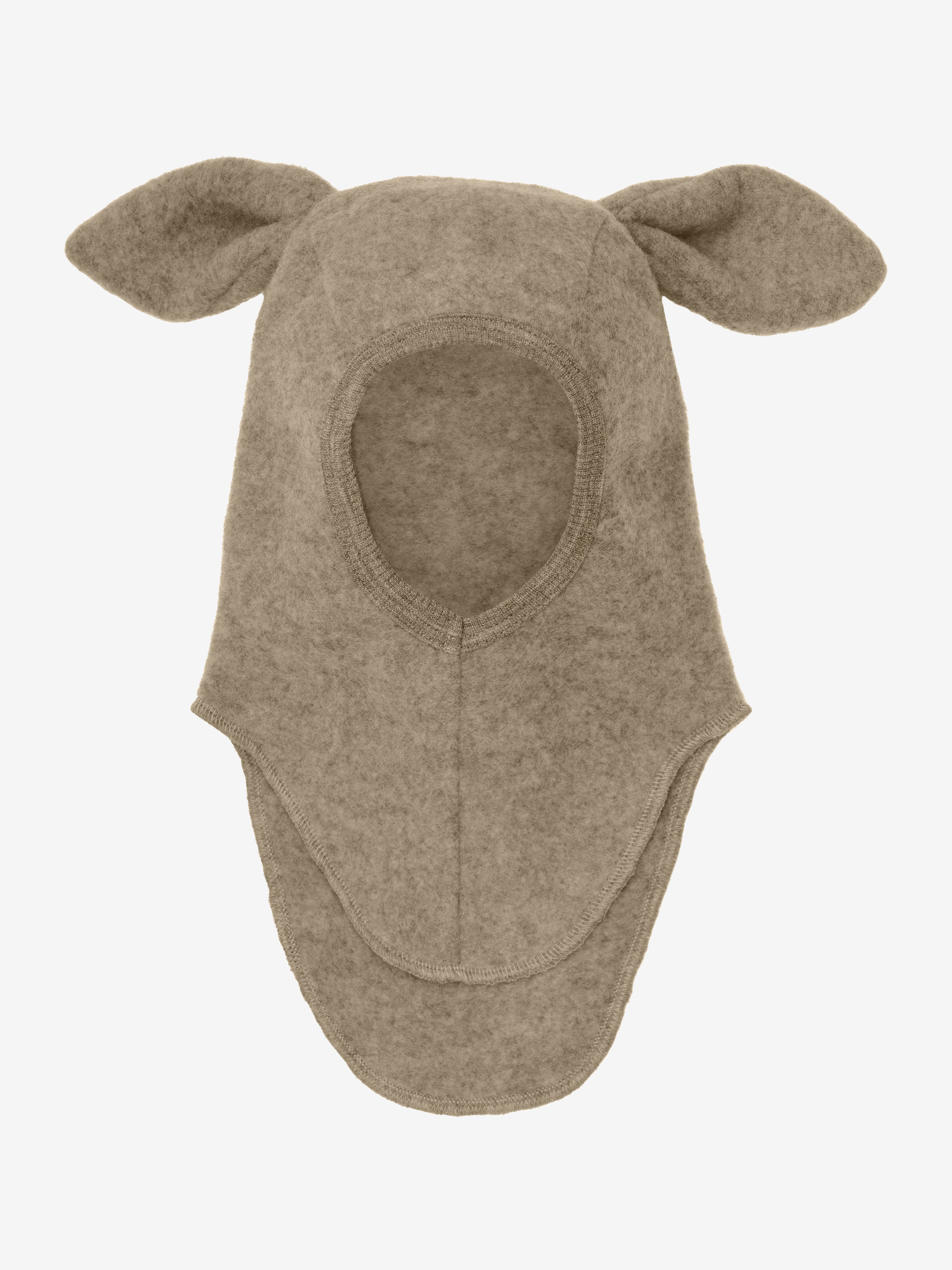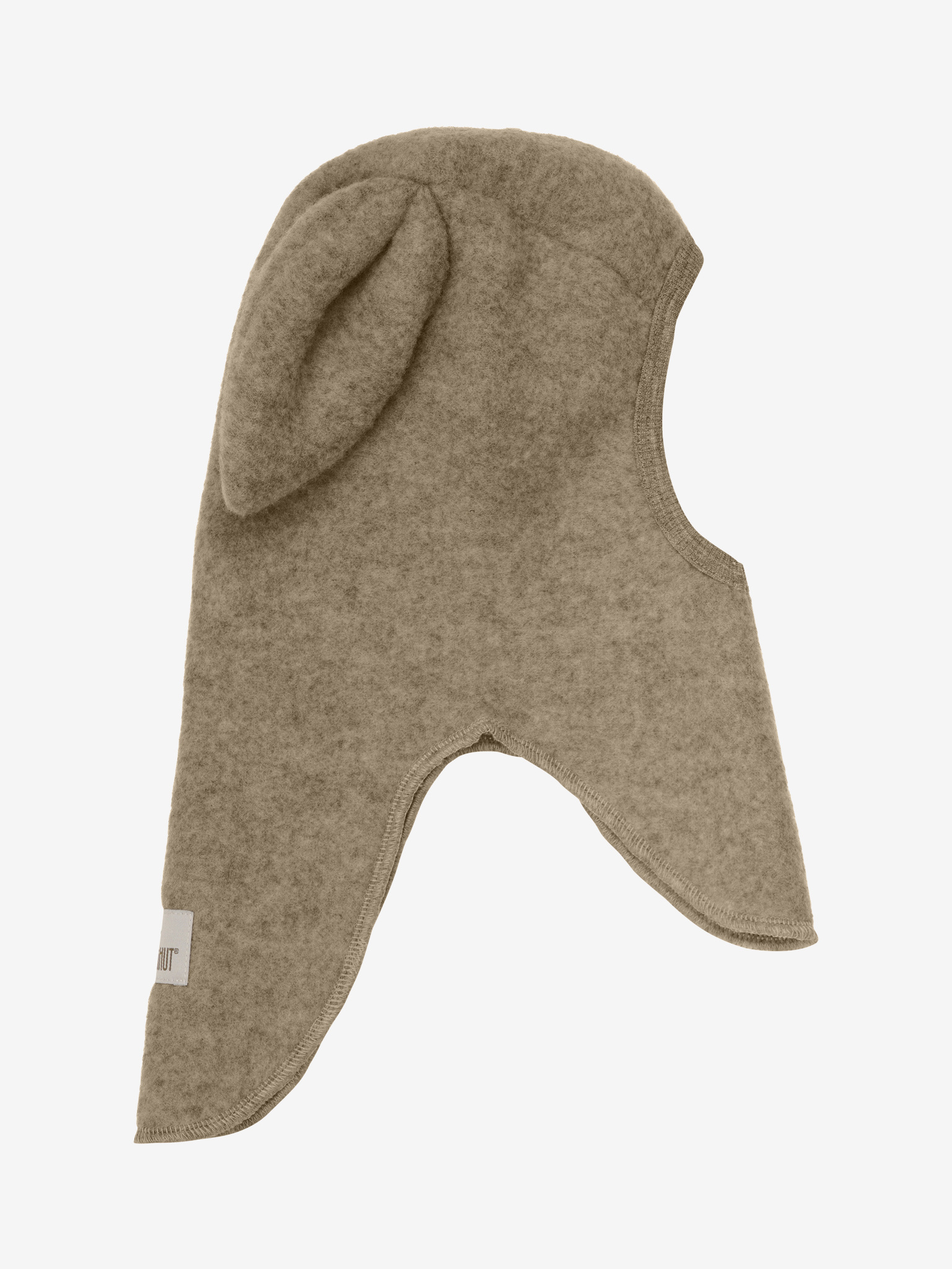 • Mooie HUTTEliHUT-balaclava in twee lagen, gemaakt van zacht wolvlies met schattige teddybeeroortjes aan de bovenkant. De HUTTEliHUT-balaclava heeft een ronde vorm en een smalle elastische ribboord rond het gezicht, waardoor hij goed blijft zitten.