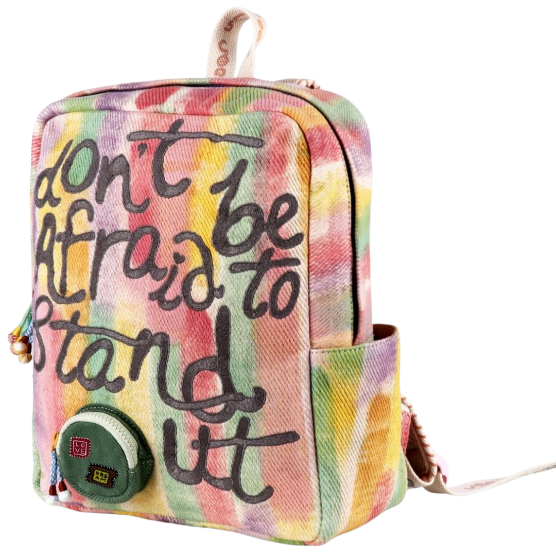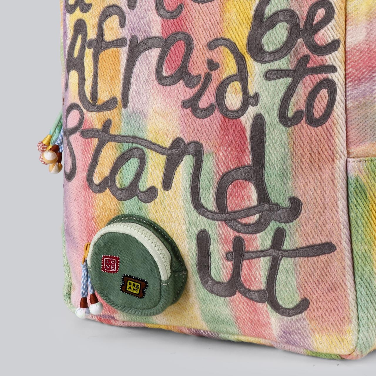 • Ga voor opvallend met de Belluga- Prism rugzak... Met een levendige, veelkleurige printstof. Val op tussen de menigte met een geborduurde tekst ‘don't be afraid to stand out’ over de hele tas.