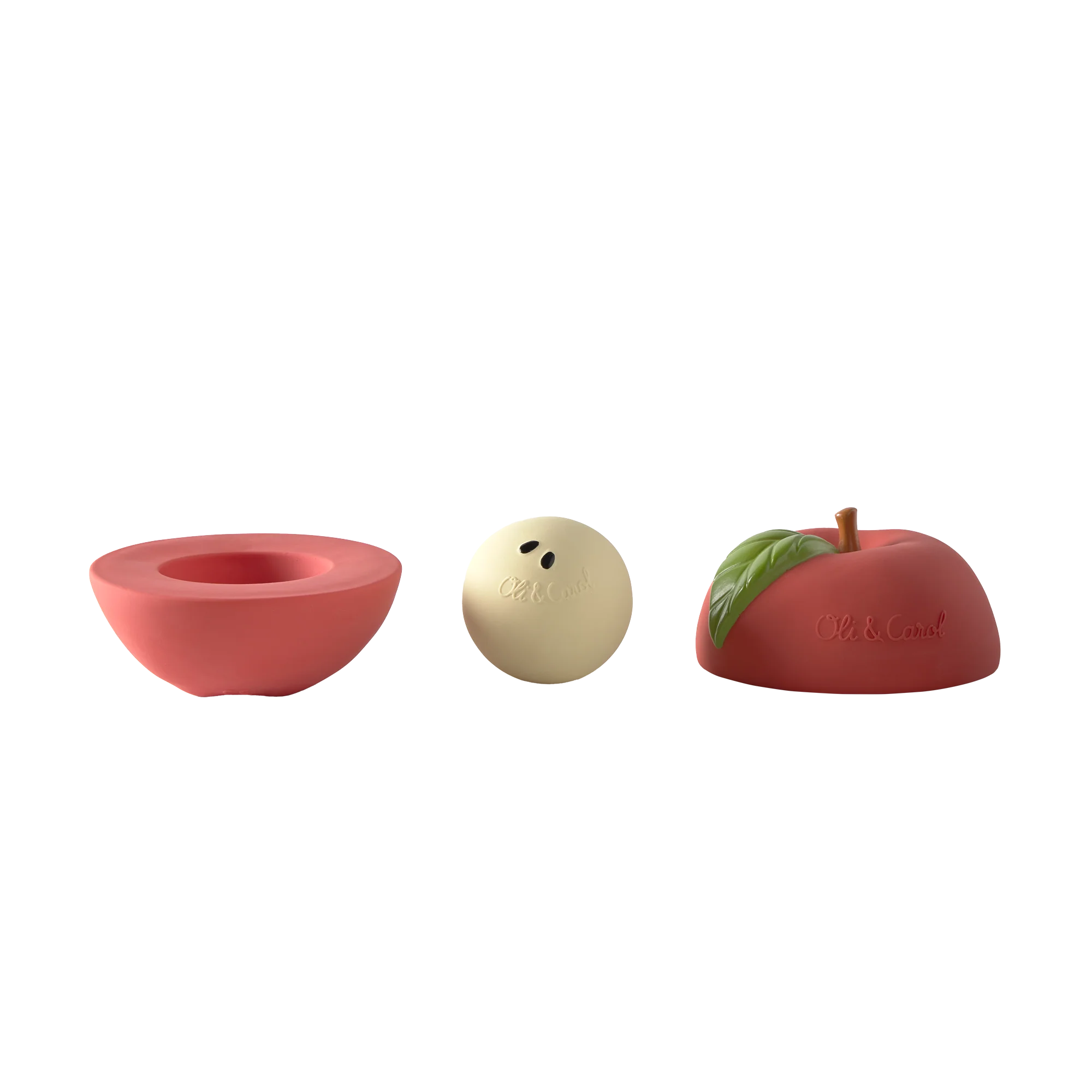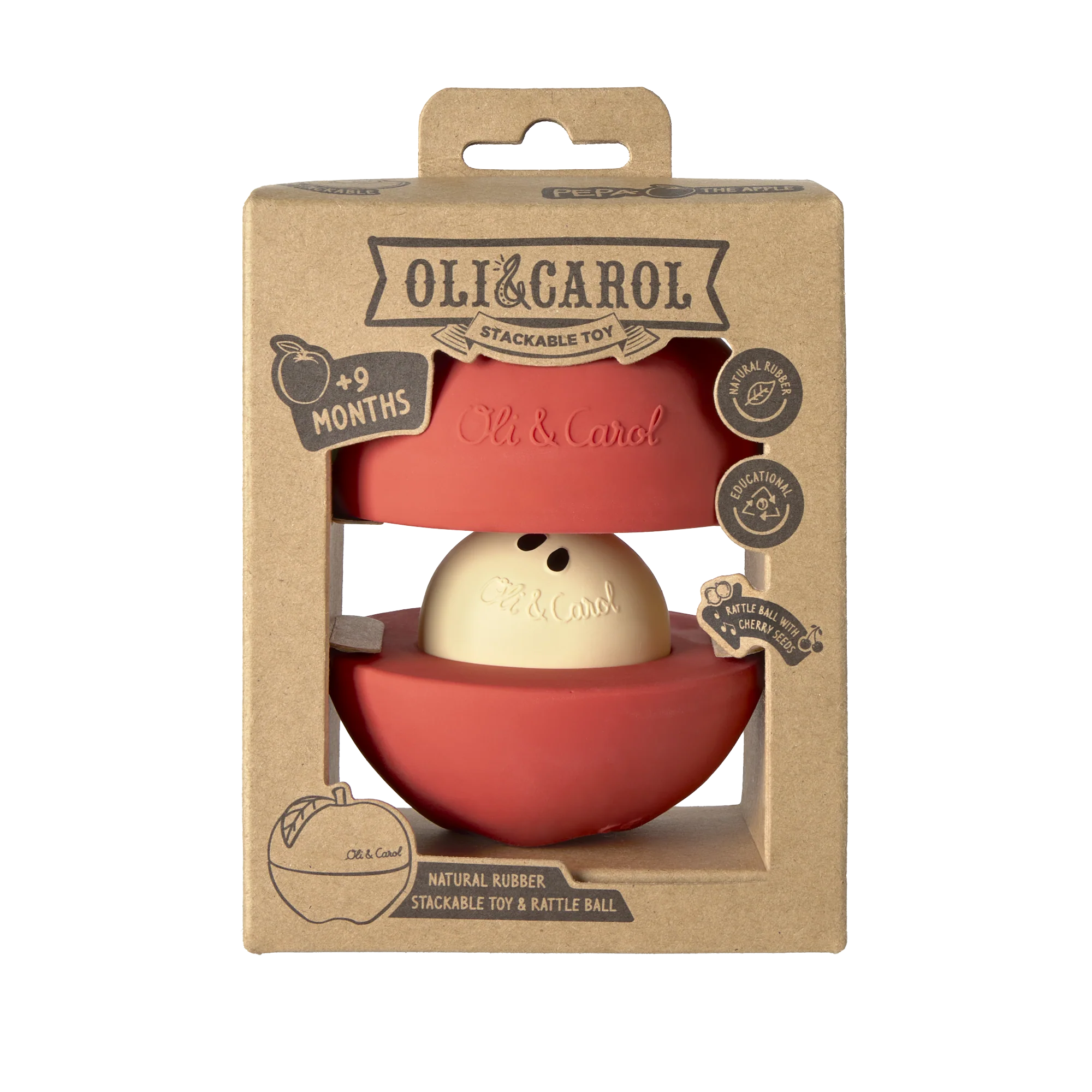 Stapel & stuiterbal – Wally de watermeloen Stapelbaar speelgoed & rammelaarbal is een 3-in-1 stapelbaar speelgoed, rammelaar & stuiterbal, gemaakt van 100% natuurlijk rubber en gevuld met gerecyclede kersenpitten.