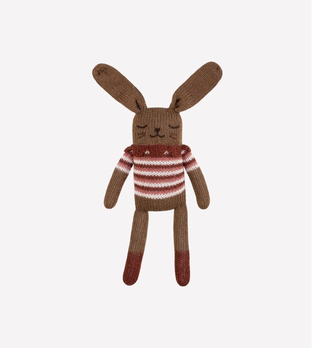 Dit speeltje wordt met de hand gebreid in een fairtrade atelier in Bolivia en steunt een productie met respect voor de aarde en de rechten van de mens. Deze knuffel is gemaakt van baby-alpacawol, die antibacterieel is en geschikt voor de gevoelige huid.