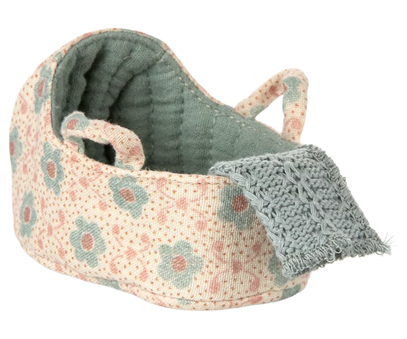 • Lief draagmandje voor de Baby Mouse van Maileg, gemaakt in zachte stoffen en afgewerkt in een mooie lichtblauwe kleur. Perfect om je kleine muisje overal mee naartoe te nemen.