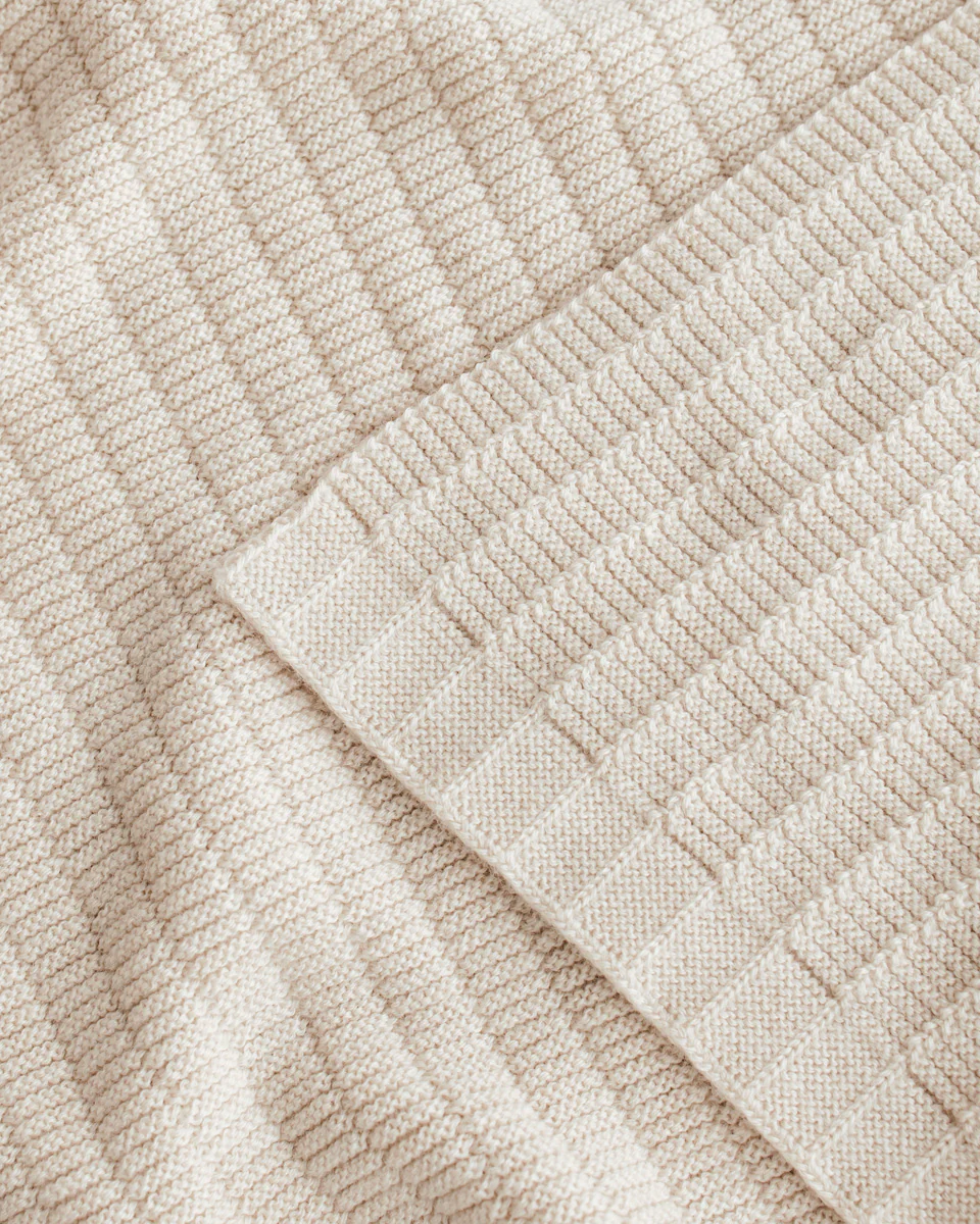 De rib rond de nek zorgt voor warmte zonder dat je een sjaal nodig hebt.