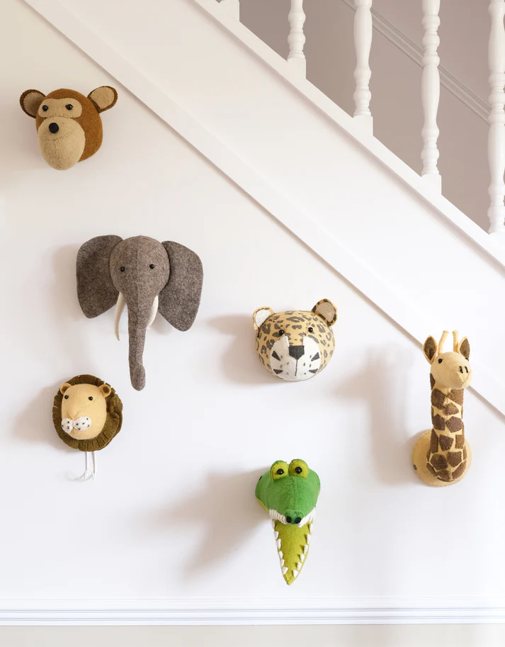 De vilten dierenhoofden van Fiona Walker zijn dé eye-catchers voor in een slaapkamer, speelkamer of woonkamer. Elk dierenhoofd is handgemaakt en heeft daarom een eigen uniek karakter. Ze zijn gemakkelijk aan de muur te bevestigen met het haakje achteraan.