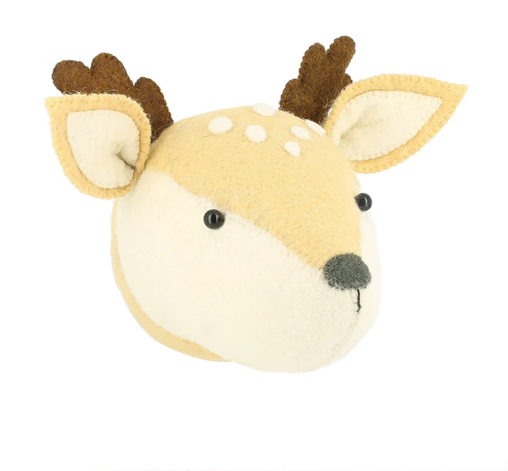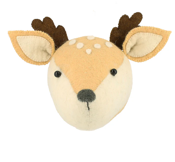 • De vilten dierenhoofden van Fiona Walker zijn dé eye-catchers voor in een slaapkamer, speelkamer of woonkamer. Elk dierenhoofd is handgemaakt en heeft daarom een eigen uniek karakter. Ze zijn gemakkelijk aan de muur te bevestigen met het haakje achteraan.