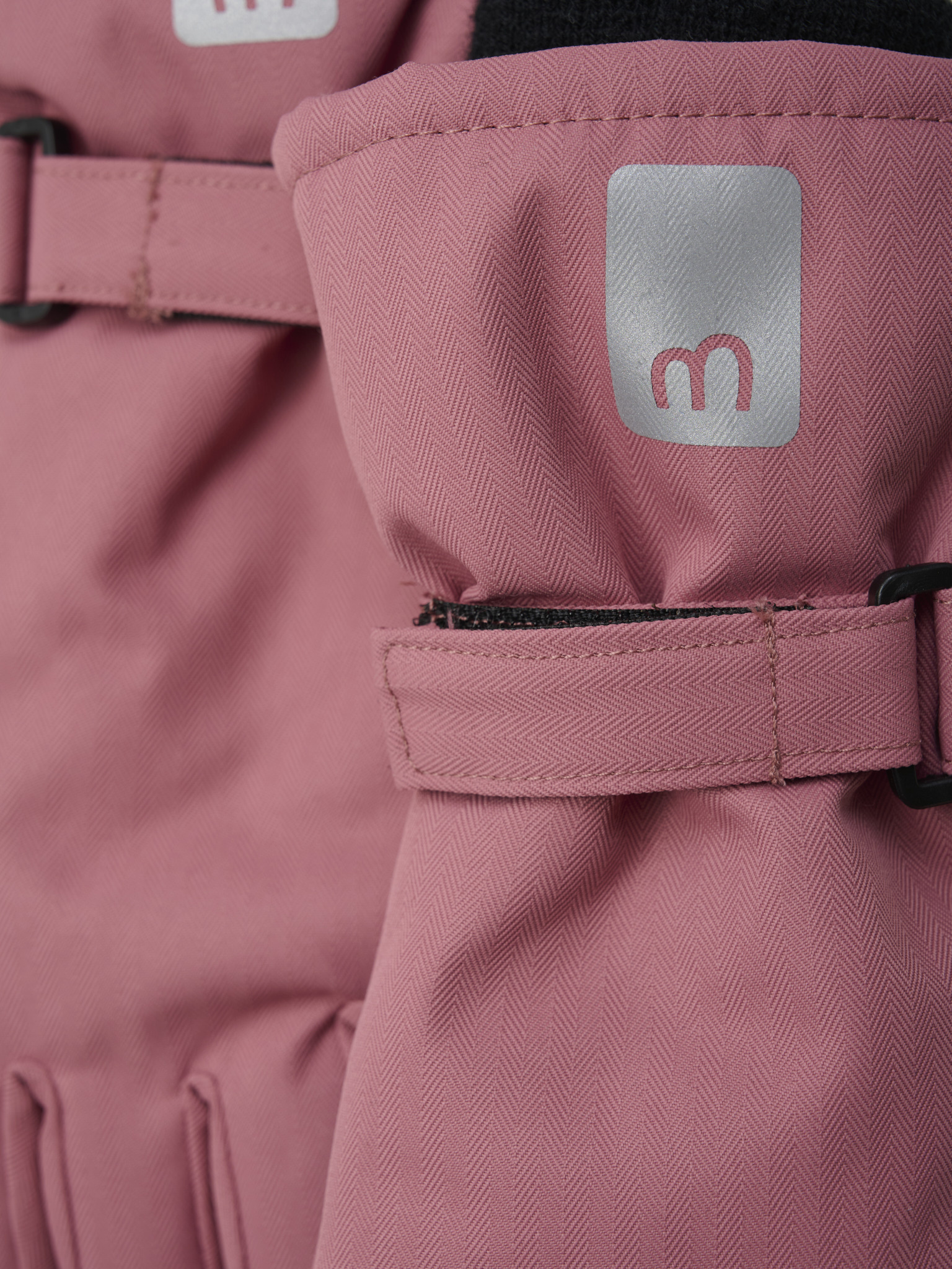 Effen gekleurde handschoenen van Minymo. De handschoenen houden de handen van het kind warm en droog. De handschoenen hebben elastische bandjes aan de binnenkant en sluiten met een klittenbandje aan de bovenkant.