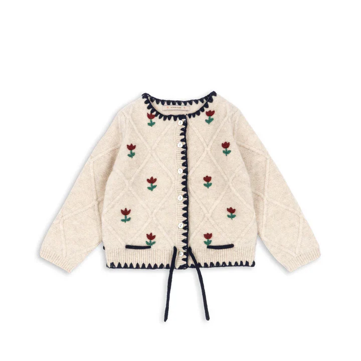 • Gebreide vest van 100% katoen met bloemenborduursel en contrasterende details. Stijlvol, zacht en perfect voor dagelijks gebruik of speciale gelegenheden.