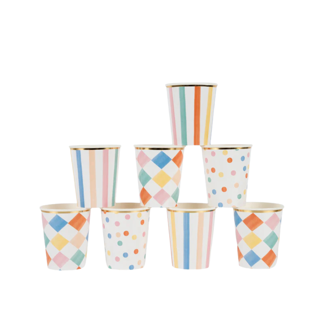 Niets straalt meer zomer uit dan strepen! Deze vrolijke papieren bekers zijn een leuke manier om een vleugje kleur toe te voegen aan een zwembadfeestje, een verjaardag op het strand of een ander zonnig feest.