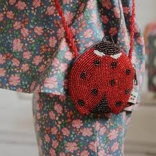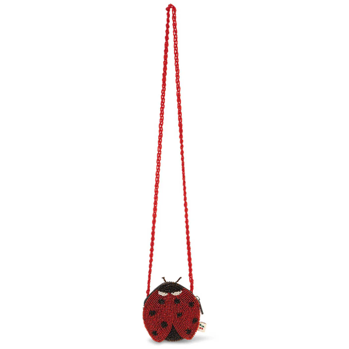 • Handgemaakte tas met kralen in de vorm van een klein lieveheersbeestje. Ontworpen met een dunne schouderriem van glaskralen en een stevige ritssluiting die gemakkelijk te openen en te sluiten is voor kleine handjes.