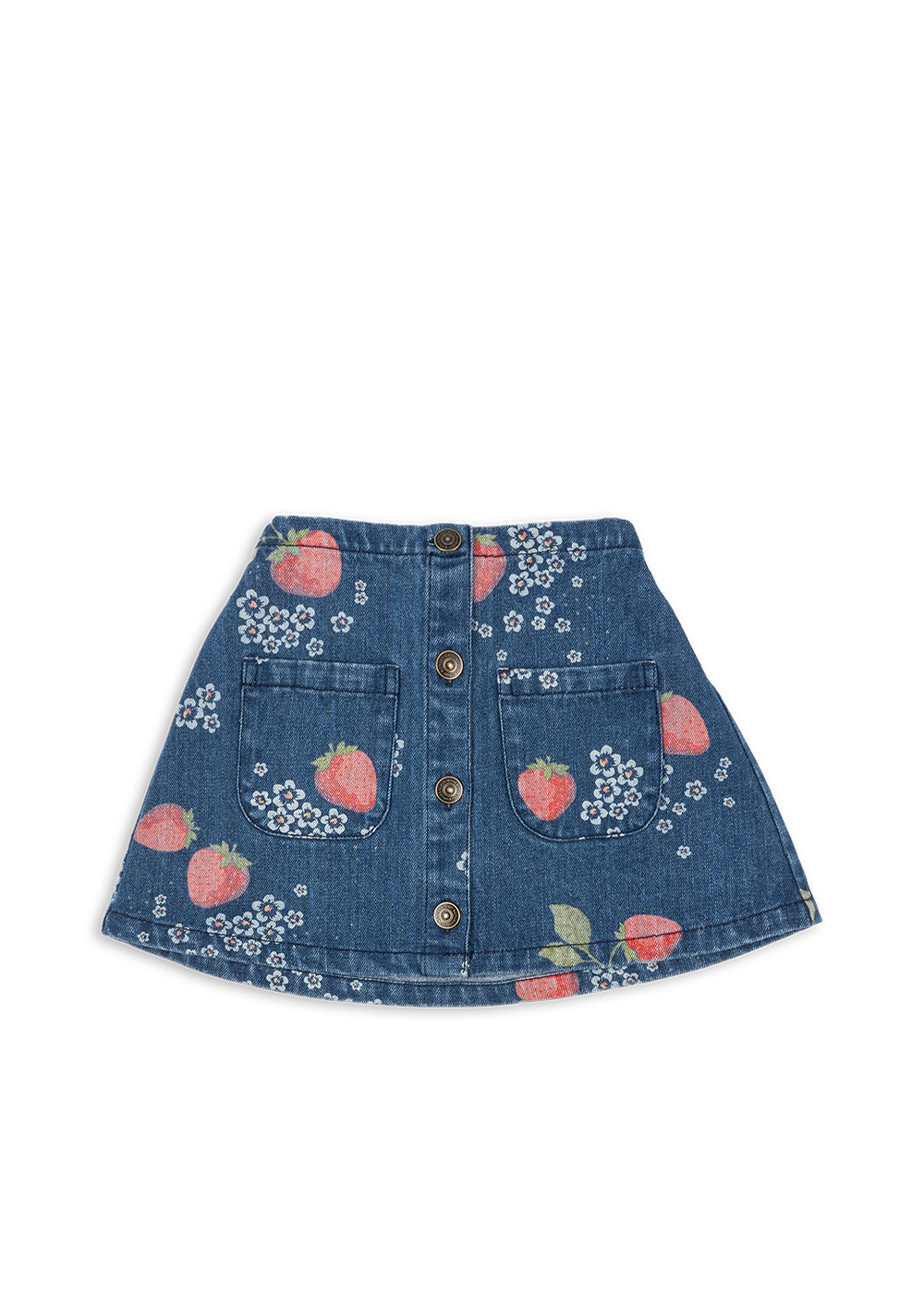 • Denim rok van biologisch katoen met zakken aan de voorkant en volledige knoopsluiting. Ontworpen met een elastische tailleband aan de achterkant voor een comfortabele pasvorm.