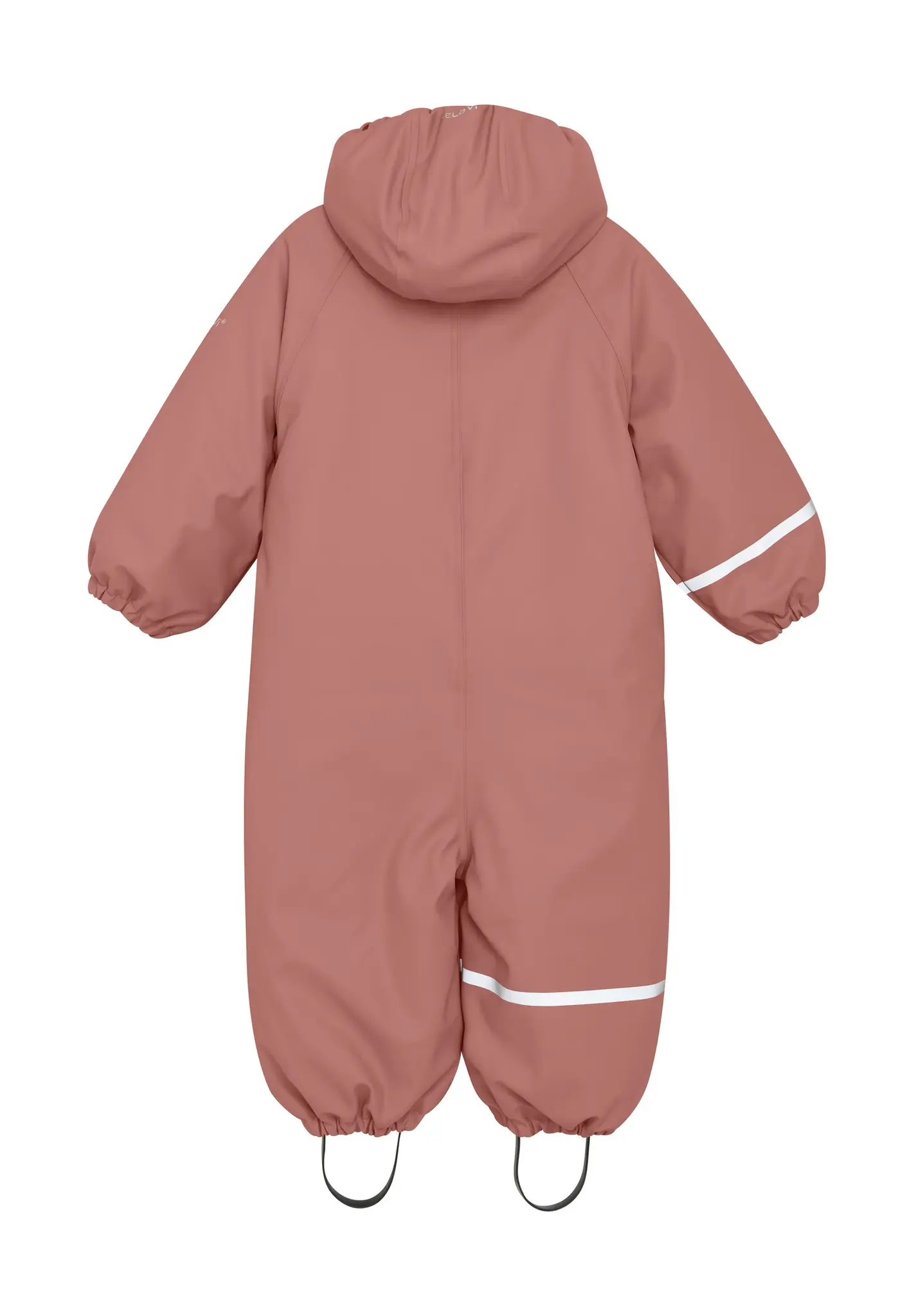 Effen regenpak met fleecevoering van duurzaam materiaal. Gemaakt van gerecycled polyester met PU-coating. Het regenpak is waterdicht met een geteste waterkolomdruk van 10.000 mm. De set bestaat uit een regenjas en een regenbroek.