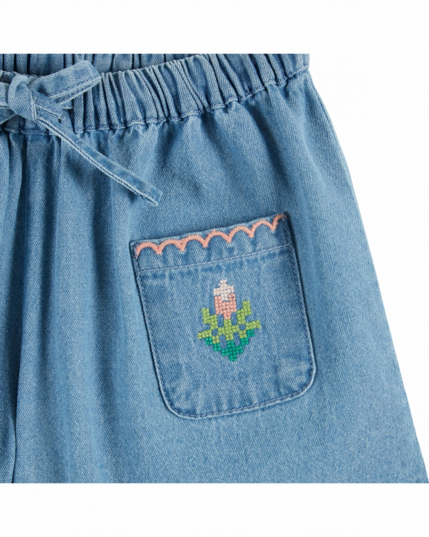 Short Denim Brode Rose - Light Denim