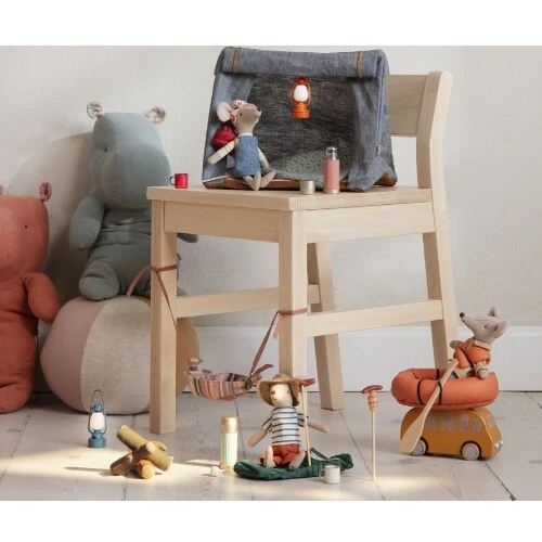 Als de wandelmuizen op stap zijn, zitten ze graag bij het vuur om hun eten klaar te maken. Deze set bestaat uit stokken, voedsel en takken. De stokken hebben een klein metaal deeltje zodat de muizen de stokken kunnen vasthouden met hun magneetpoten.