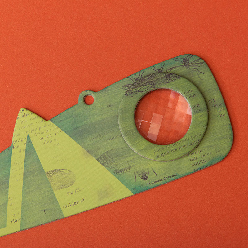 Een optische ooglens in een sprinkhanenillustratie waarmee je kunt zien zoals een insect. Een ideale caleidoscoop voor je avonturen in de natuur.