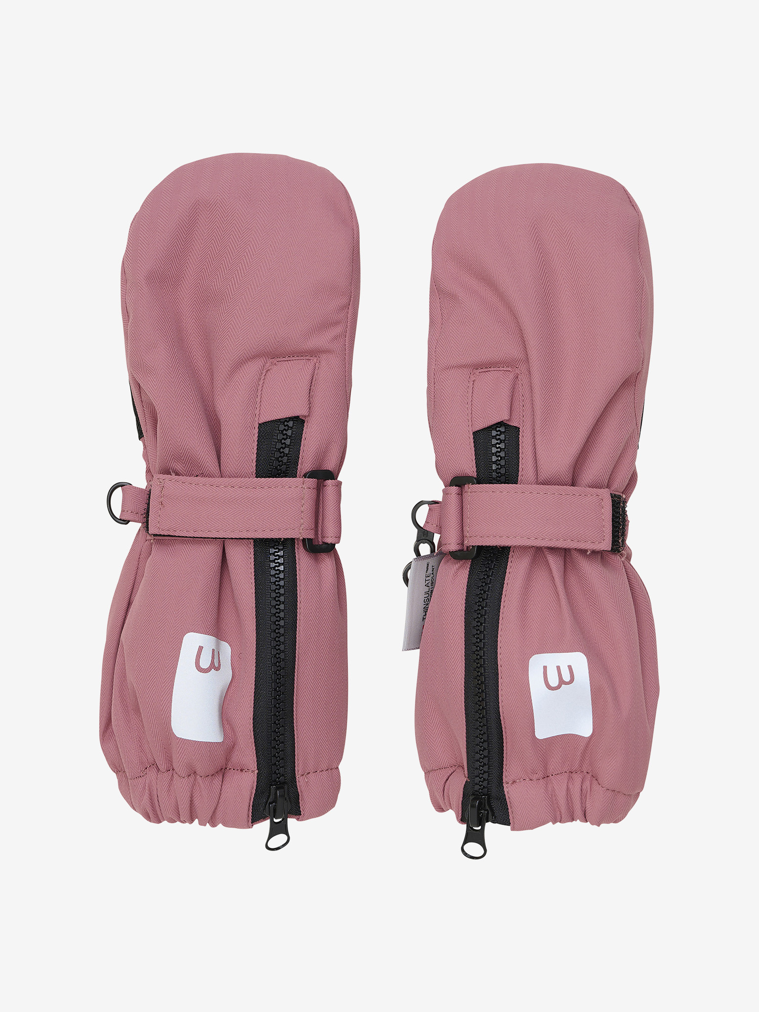 • Wanten van Minymo. De wanten houden de handen van het kind warm en droog. De wanten sluiten met een verborgen ritssluiting en een klittenbandstrip aan de bovenkant.